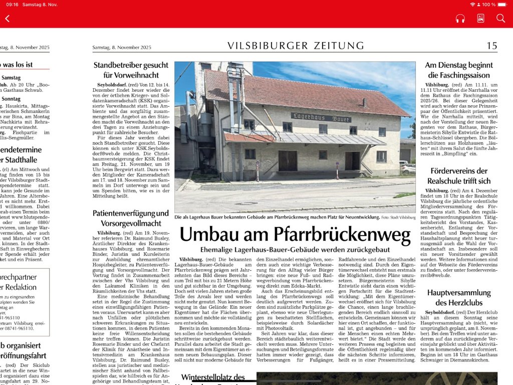 Die bekannten Lagerhaus-Bauer-Gebäude am Pfarrbrückenweg machen Platz für Neuentwicklung. Nach zwei Häusern werden weitere Gebäude auf dem Areal zurückgebaut. Archäologen inspizieren bei den Abbrucharbeiten die Häuser auf Lückl 6 und 7. Das Haus Am Lückl 6 soll künftig durch ein neues Einfamilienhaus ersetzt werden.